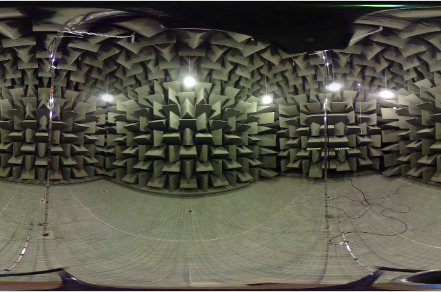 The purpose of an anechoic chamber is to remove two inherent characteristics of sound: reflection and reverberation. In any typical room, when you utter something or make a sound, the sound waves radiate out from where the sound comes from and reflect off the hard, flat surfaces—walls, floor, and ceiling. These reflections that reach your ears a fraction of a second after the direct sound cause reverberation, which is responsible for imparting a room with its characteristic acoustic flavor. In an anechoic room, there are no reflections. The ceiling, floor, and walls are lined with huge, projecting wedges of a heavy, porous sound-deadening material, usually fiberglass or foam. The wedges aren't an arbitrary choice; they're an essential element of the physics. When a sound wave hits a flat surface, it rebounds straight back. But when it encounters the sloping face of a wedge, it enters the porous material. As the sound wave penetrates further into the constricting wedge, it is dispersed into infinitesimal amounts of heat by friction, until the wave is fully absorbed and has nothing left to bounce back.