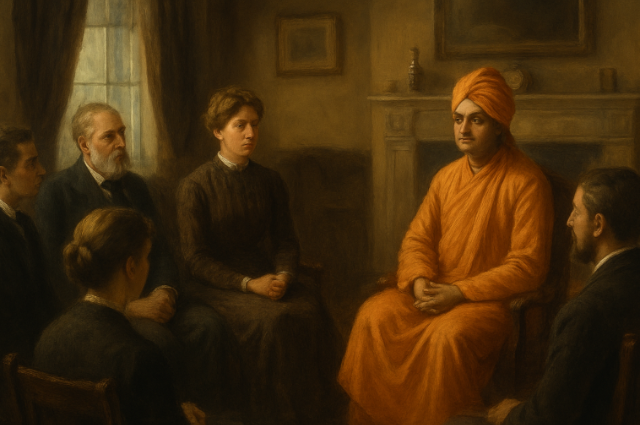 এরকমই এক সময়ে ১৮৯৫ সালের নভেম্বর মাসে লন্ডনে এক পারিবারিক আসরে মার্গারেট স্বামী বিবেকানন্দের কাছে বেদান্ত দর্শনের