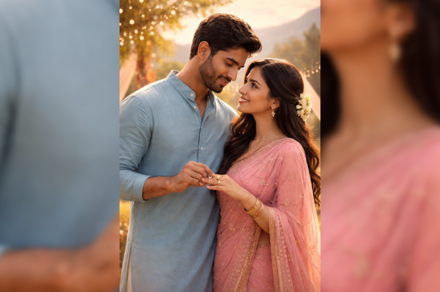 Kavita's sari pallu slipped; she felt a gentle touch – Amit’s hand slipped into his kurta to pull out a ring, which he slid onto her finger.