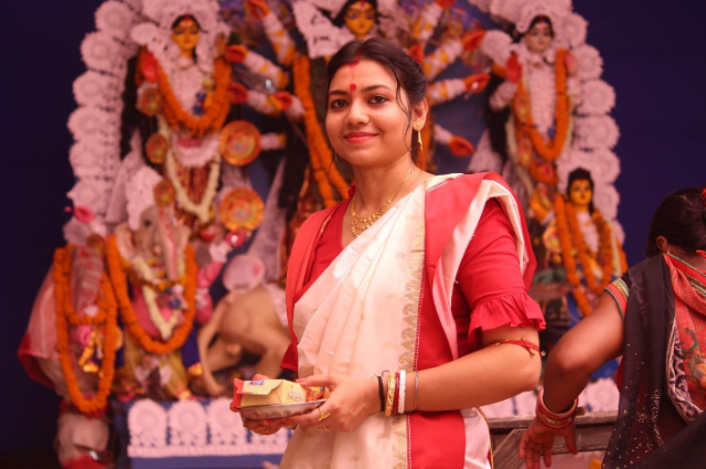 And yet, it is this very brazenness and radiance that endears the Bengali woman to her own community. Visit Bengal during the Durga Puja, witness the pandals, the lights, the rhythms of dhak, the women walking with pooja thalis in hand, their saris blinding white with red borders, their bangles ringing in the air. She is part of a joyous culture of celebration, debate, creativity, and conviviality. Her voice belongs in intellectual salons even as it belongs in household kitchens. She is fearless in the face of tradition but also rooted in it, because in Bengal, to be rooted is not the opposite of flying; one must have deep water before one can leap.