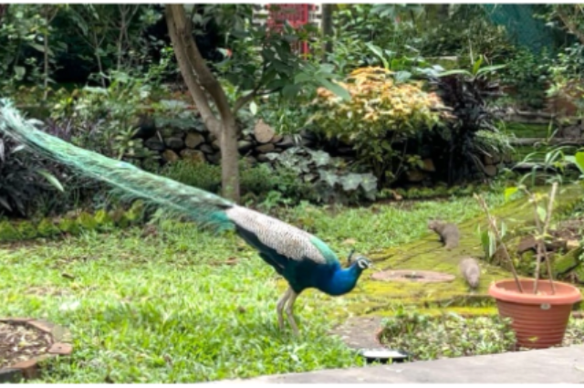 It had been a long time since the peacock, whom I affectionately call Ron, had wandered into our garden. But just yesterday afternoon, as I sat by my window talking to a friend, a surprise unfolded.