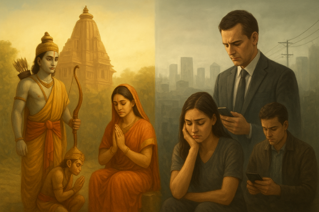 Family and community form the second ring of influence. In many homes today, affection coexists with fatigue; love speaks, but stress shouts. Here, Treta wisdom is profoundly practical: slow down to show up. Replace performative parenting with present parenting—fewer lectures, more listening. Resolve disagreements without contempt. Celebrate milestones with meaning, not only with money.