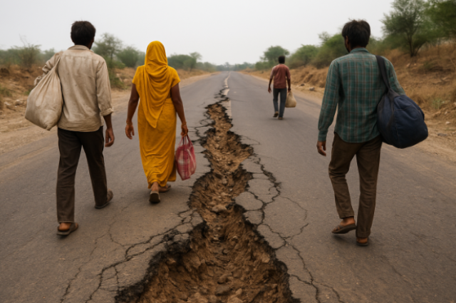 During the 2020 nationwide lockdown, millions of migrant workers were left stranded in cities without transport, income, or food. With no trains or buses running, they began walking hundreds of kilometers back to their villages — from Delhi to Bihar, from Mumbai to Madhya Pradesh — under the scorching sun. Many collapsed on highways; some never reached home. This haunting image of barefoot laborers on empty expressways became one of the starkest symbols of India’s inequality, a reminder that while the nation celebrates digital progress, millions still struggle for the basic right to move safely.