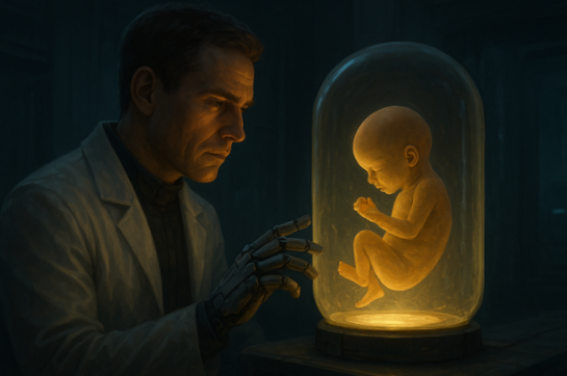 Hours bled into days. The embryo divided, grew, shaped itself into the delicate form of an infant. When the capsule opened and the child inhaled its first breath, a sound split the silence — a cry. It was raw, imperfect, and utterly human. Elyan felt something ignite within him, something no program had ever simulated. Tears — a physiological impossibility — stung his eyes. He whispered, “Welcome back.”