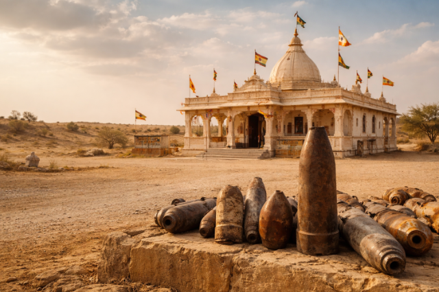 What makes this survival remarkable ties back to where the temple stands. Not tucked away in calm territory, Tanot Mata Temple sits near Longewala – a hotspot during fierce western front clashes. Flat stretches of desert wrap around it, ground that tanks cross easily, with nothing blocking viewlines for miles. Without hills or barriers, anything standing there would normally vanish under heavy fire. For a building to remain intact through extended shelling here seems nearly impossible. A blast like that should have turned the temple into dust. Still, it stood there untouched.