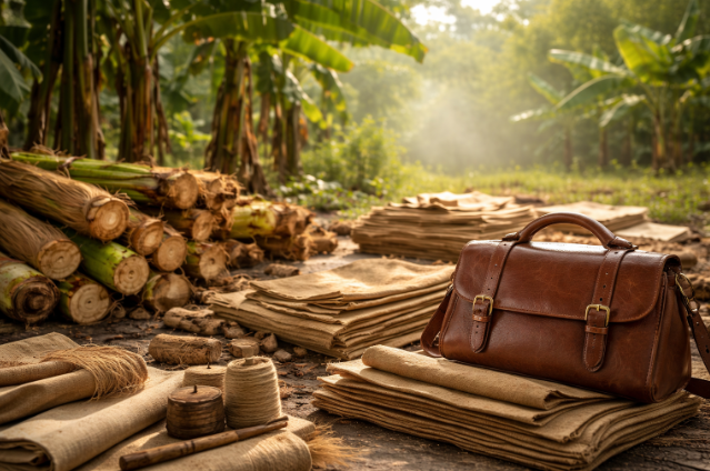 The transformation begins with curiosity and care. Young innovators like Jinali Mody looked at banana stems and saw strength rather than refuse. The science is simple and elegant. Banana stems are rich in long fibers that have evolved to hold up heavy fruit. These fibers can be extracted, cleaned and bound together using natural gums and starches. Instead of chromium or lead salts, the process relies on plant-based binders. The fibers are pressed into sheets and finished with natural pigments. The result looks and feels like high-quality leather. It even carries a soft, earthy scent that many users describe as calming rather than chemical.