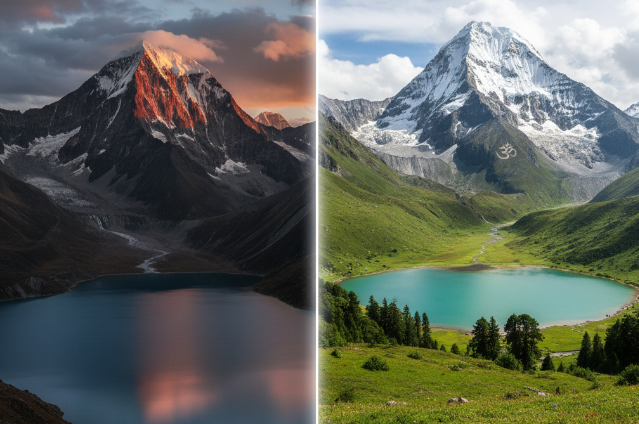 Both peaks are in the Himalayan region, surrounded by scenic landscapes, yet they offer distinct pilgrimage experiences. The experience of visiting Adi Kailash and Mount Kailash in terms of travel, accessibility, and rituals is different.