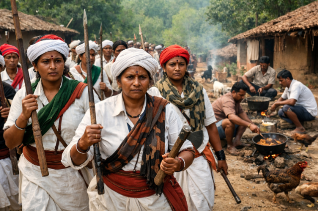 The invaders, seeing a massive force of "men" on the fort walls, were repelled not once, but twice. It was only when a spy noticed the "soldiers" washing their faces with both hands—a gesture then considered feminine—that the truth was revealed. Though the fort eventually fell in a third battle, the valor of these women became the bedrock of Adivasi identity.