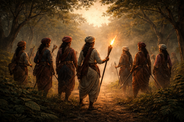 When women assume control of the forest, there is hardly mayhem. Rather, forests are put under control, conserved, and replenished. The blueprint is found in the hidden tradition of the 24-hour matriarchy, whether it is ritual, resistance, or government. It teaches us that power does not require permanence in its transformative capacity, and authority does not require aggression to be effective.