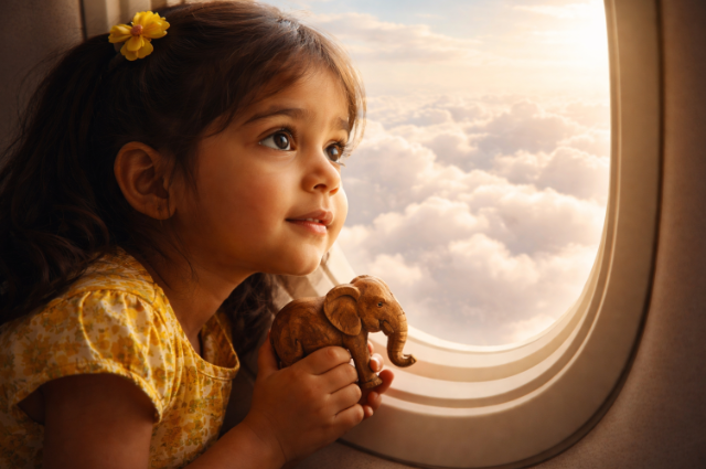 But in the spring of 2026, her world expanded far beyond the green canopy of southern India. It was her school vacation, and she was embarking on her first aeroplane ride to meet her father in the United Arab Emirates. As the aircraft broke through the atmosphere, Ami pressed her face against the thick, oval window of the Boeing. She pointed her wooden elephant at the sky, utterly convinced that the endless, fluffy clouds beneath them were made of fields of white cotton candy.