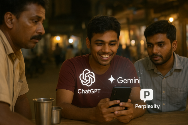 One evening at a chai stall in Pune, I overheard a college student tell his friend, “Bro, Gemini Pro is free for 18 months if you use Jio. I’m ditching ChatGPT.” His tone was triumphant, as if he’d discovered a cheat code to life. The friend nodded, eyes glued to his phone, scrolling through Reels about “Top 5 Free AI Tools You Must Try.” The stall owner, who had just learned how to use UPI, listened silently, perhaps wondering what this “AI” thing was, and whether it would soon start demanding QR payments too.